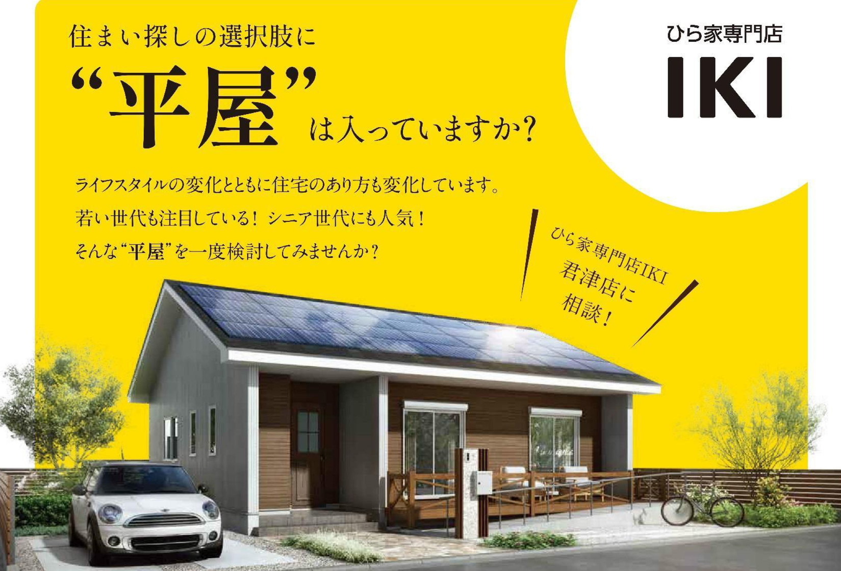 近年注目を集めている。ワンフロアで生活が完結する平屋は2階建てにはない様々な魅力で需要を伸ばしています。IKIの平屋はシンプルに、そしてスマートにより効率的に、だからこそ実現する低コストで住まう人にフィットする様々な間取りプランをご用意しています。
